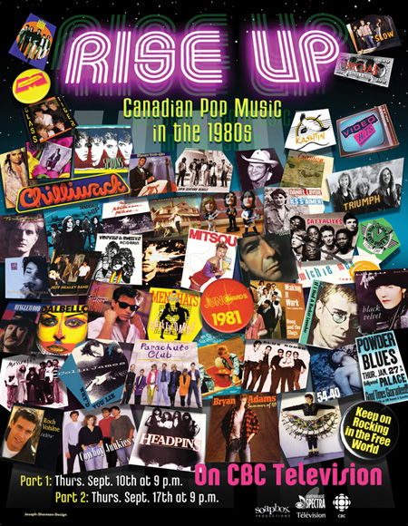 Rise Up looks at the digital age of Canadian music in the 1980s, a visual era of big hair and shoulder pads, when music videos helped homegrown artists to take off internationally. America's MTV and Canada's MuchMusic provide launching pads for artists as varied as Triumph, Bruce Cockburn, Chilliwack, Jane Siberry, Men Without Hats, Spoons and Bryan Adams.